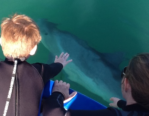 昨日は珍客ハナゴンドウがマリーナの中に入ってきました。 帰り道を見つけられないようで、ドックのあちこちに 頭をぶつけてけがをしています。 ボートで誘導しようとするも、うまくいかず、最後はガイドの カルロスを含め3人のボランティアが水中に飛び込み、 シーツを使いながらなんとかマリーナの外に連れ出しました。 ちゃんと家族と合流できるとよいのですが、ちょっと心配。