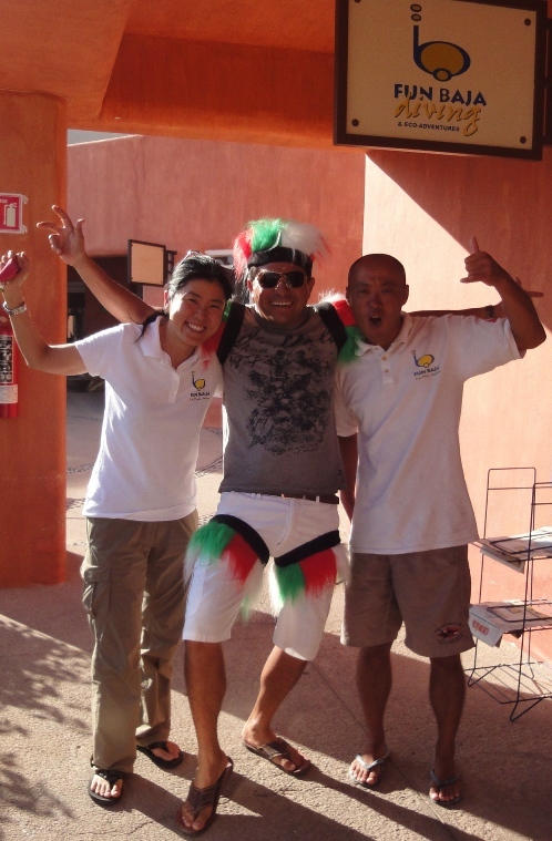 だんだんダイバーが増えてくる季節になりました。 イスロテスのジョー君も健在。 スペイン語では「ジョ」と「ヨ」の発音の区別が あまりないので、メキシコン人が日本人の真似をして 「でかジョー」と言おうとすると、発音が「でかヨー」に なってしまうことが多く、笑ってしまいます。 日本人にはRとLの区別が難しいのと同じですね。