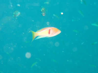 1本目エントリーした瞬間に『うわぁぁぁ冷たいぃぃぃ(泣)』 実際、おいらのダイブコンピューターは26℃をさしておりました。 透明度も5〜10m前後。。。 【イエローバンドフージュラー】がおいら達の行く手を遮ります。 【アカオビハナダイ】もいたる場所で群れております。とっても艶やか!! レオパードはゲットしてものの、残念ながらブラックチップは現れず。。。